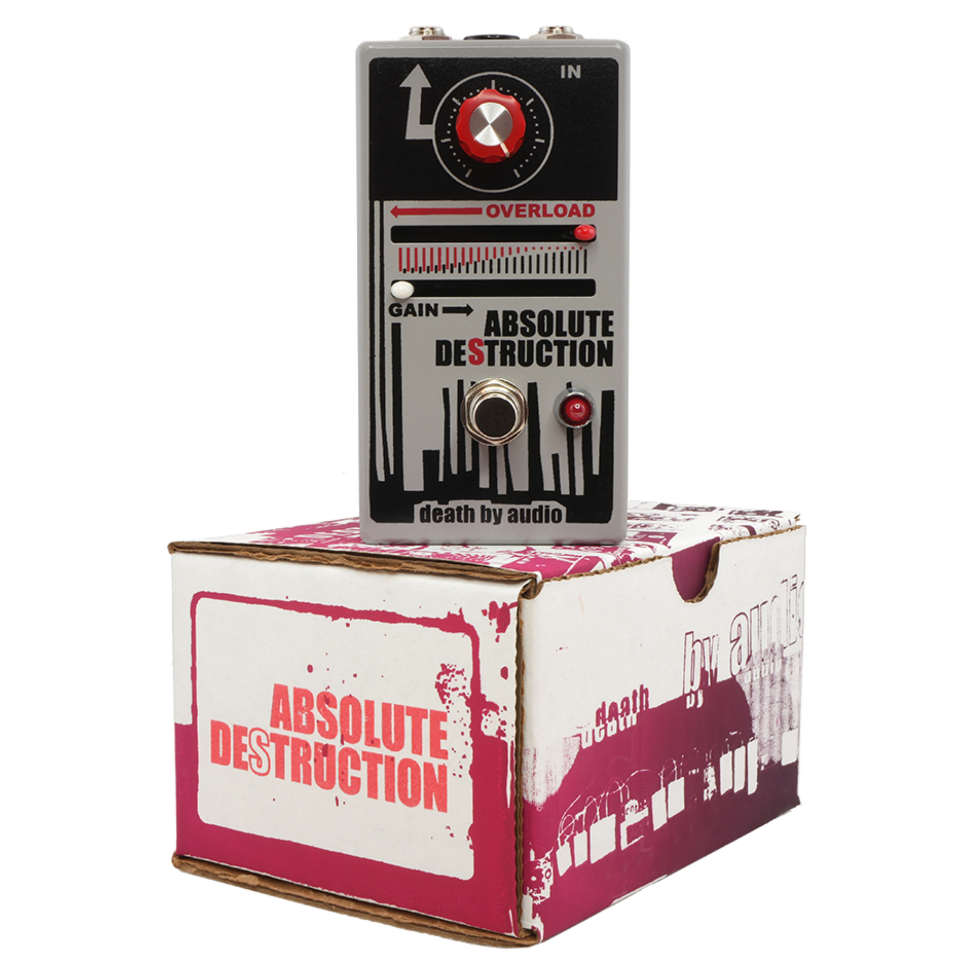 Absolute Destruction harnesses a power amplifier IC to generate its insane sound. Its Gain and Overload sliders interact to create a wide range of unique sounds in various positions. You choose, to your liking, how much to absolutely destroy your sound. The further the Overload control is set to the left, the faster the effect slips into absolute destruction. Blow it out even harder and faster by slamming Gain and Overload opposite one another. Lower one or the other for smoother attack and release. Screaming octaves, thick fuzz, and the sound of your guitar reaching back from the depths of destruction are at your fingertips. Think of it as a psychotic compressor, or maybe more accurately the sound your amp would make if you set fire to it.