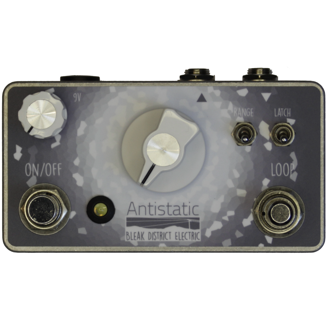 "Antistatic" is a glitchy and gated fuzz with a built in micro looper by Bleak District Electric.
