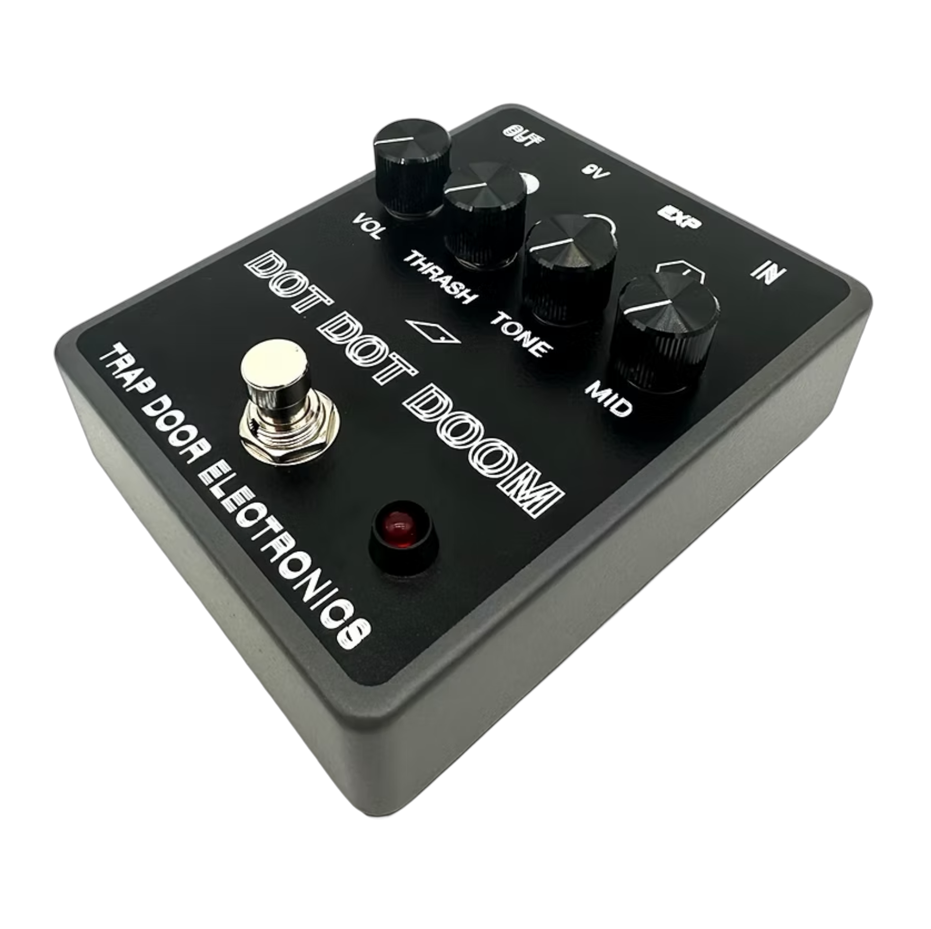 At its most normal, the Dot Dot Doom is the heaviest fuzz pedal out there, with absolutely no low end loss whatsoever (really!) and a shimmering fizz at the top. You’ve probably never heard a fuzz with this much of all the frequencies you want. I know I haven’t. You can doom out like never before. Between the hyper-musical, wide range of the TONE control and the MID control filling in the scoop to taste, you’re able to dial in whatever exciting tone you can dream of (note: if you dream of boxy/dull/thin/boring tones, Dot Dot Doom is not for you). Your days of having to choose between heaviness and teeth, scooped and flat, are over. Plug in an expression pedal and get wild, phaser-like sweeps while you play.