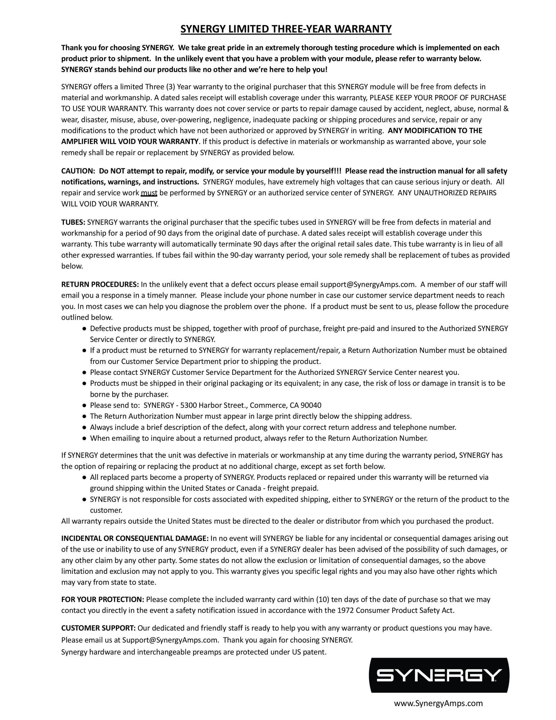 - All-tube preamp module custom designed by Dr. Z and Synergy