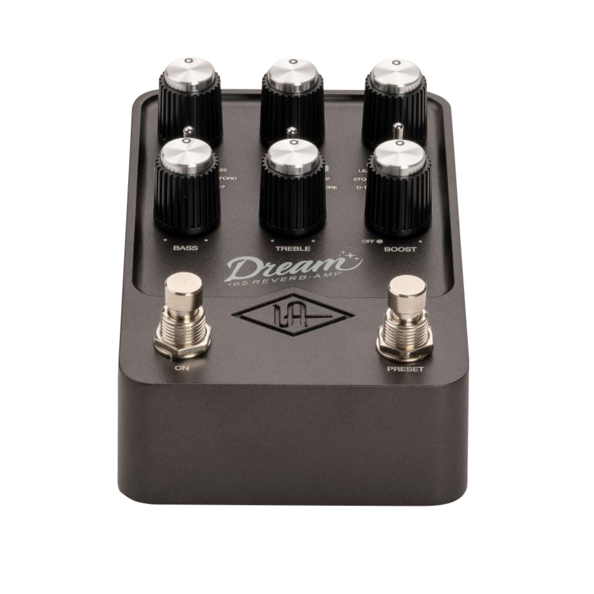 The UAFX Dream '65 Reverb Amp pedal gives you the essential American tube amp used by artists and producers for 60 years, ranging from Muddy Waters to The Beatles to Mac Demarco. Built on powerful dual-engine processing and world-class UAD modeling, Dream '65 delivers bold cleans, sweet breakup, and divine spring reverb and vibrato. Whether it's replacing your amp rig and going direct to front-of-house on stage, or recording tracks into your DAW — Dream '65 gives you the inspiring, album-ready tones of an expertly miked “golden unit” tube amp, within seconds. Dream '65 is the only amp-in-a-box pedal that faithfully captures the immersive sound of real tube-powered spring reverb and vibrato, making this pedal perfect for soul to surf, funk to punk, blues to bebop… you get it. Take your vintage amp tone a step further with custom mods and legendary drive sounds made famous by artists like Stevie Ray Vaughan and Steve Lukather. With two iconic mods and a clean boost built-in, Dream '65 lays down sounds that put whiz-bang amp modelers under the bunk bed. With custom mic and speaker pairings derived from UA’s award-winning OX Amp Top Box, Dream ‘65 gives you inspiring, album-ready studio tones at the flip of a switch. Dream '65 gets even better with the UAFX Control mobile app. Download custom artist tones, recall and archive your presets, and dive deeper into one of the best American tube amps ever made.