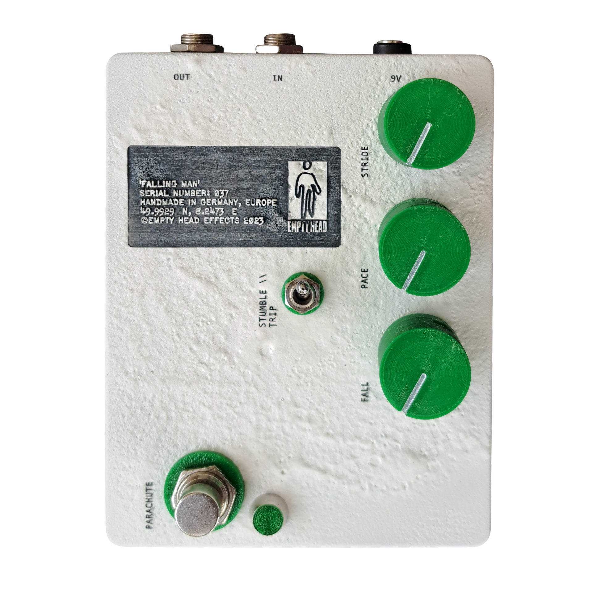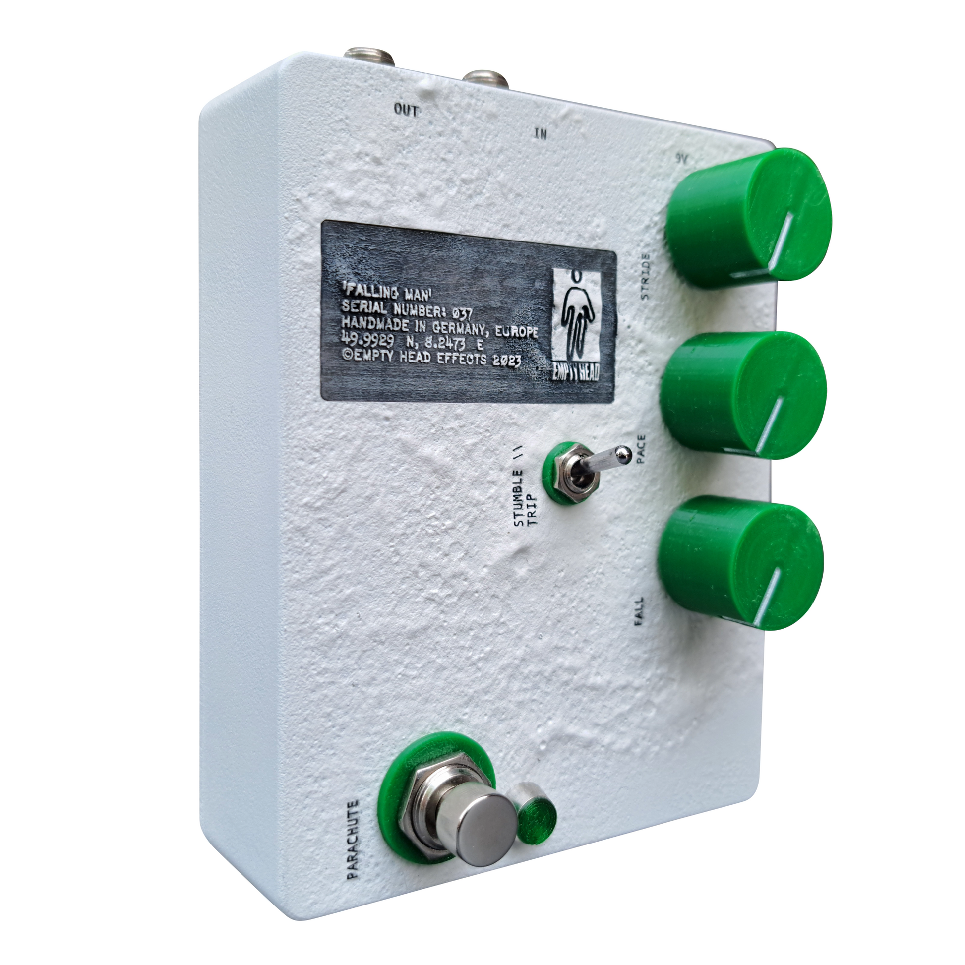 Based around a 2399 delay chip, the pedal starts life as a simple delay effect, with 'Stride' (delay time) and 'Pace' (feedback amount) but from there one can engage the 'Fall' control (input envelope following modulation) to invoke and increase the strength of gravity as it pulls your signal ever closer and more comprehensively to the ground.