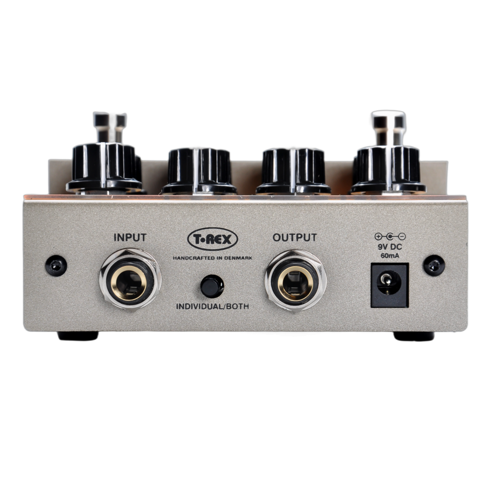 Individual/Both - Located at the rear of the unit, there is a small configuration push switch. When it is in its outer position, both effects will activate simultaneously, regardless of which foot switch you select. When it is pressed in, the effects operate independently