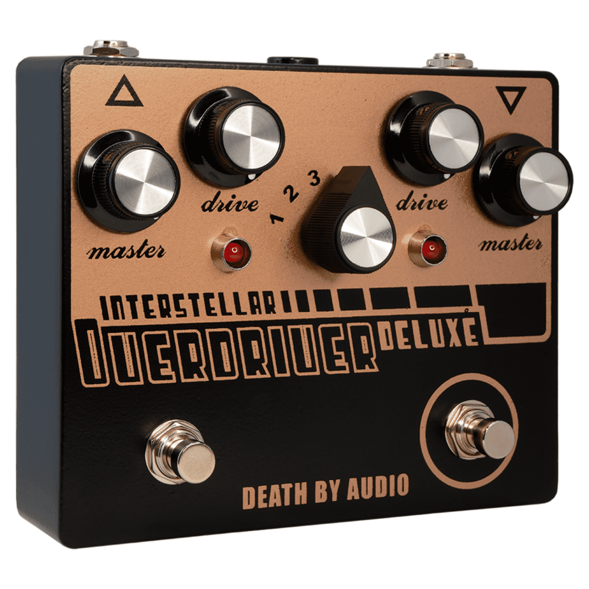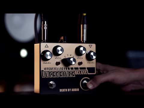 The Interstellar Overdriver Deluxe consists of two amazing, fully analog, Interstellar Overdriver pedals featuring additional, revamped options! Not only can you create unearthly overdrive and fuzz sounds by routing the first channel into the second, but there are 5 additional options on the second channel to give you a huge range of wild, filtered, modulated, and blasted-out overdrive/fuzz tones. A pleasant boost, a squealing lead, a chopped-out glitch, a jet rocket lift-off; this is the pedal to blast your sound into the cosmos!