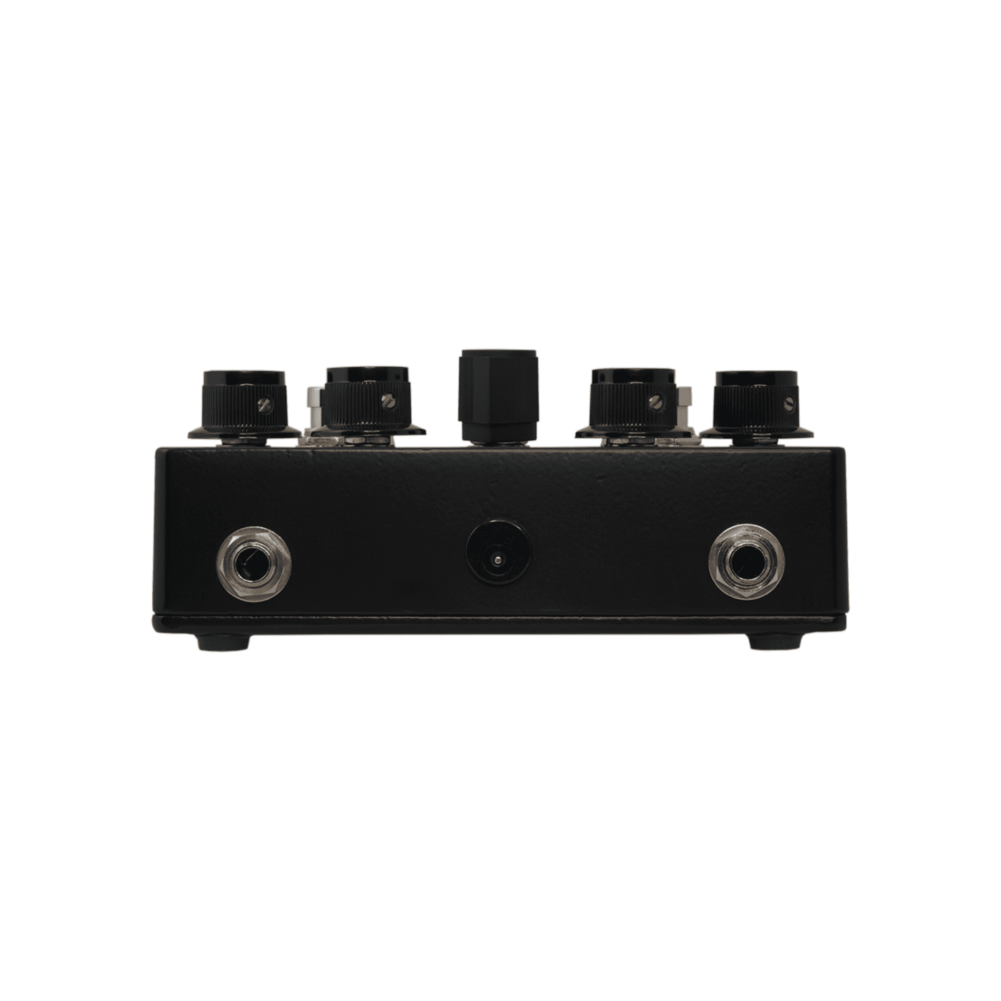 NOTE: Channel 1 is activated with the right side footswitch and adjacent controls, always remaining the Interstellar Overdriver circuit. Channel 2 on the left, however, can be altered with the rotary to become something completely new. Both sets of controls will interact with one another to produce new, insane tones depending on which rotary position is selected - everything from piercing overdrive, to oscillations, and choppy trem.