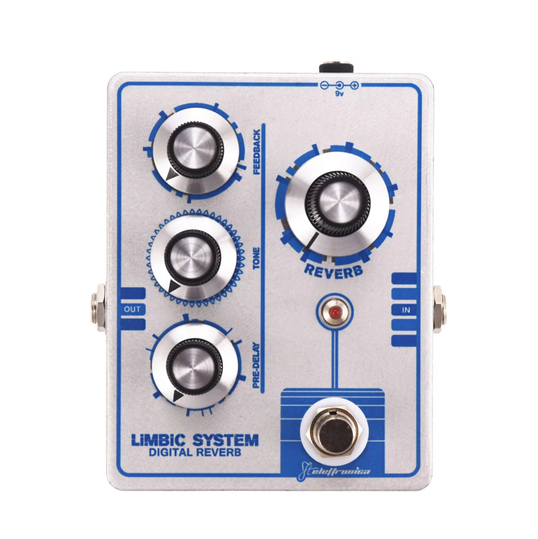 The control section for the Limbic System is relatively simple, all things considered. The Reverb knob sets your reverb amount, while Tone adjusts the brightness or darkness of the reverberated sound. Control your feedback with the Feedback knob, and adjusts how quickly the effect comes on using Pre-Delay. That’s it. You sit down, plug it in and BAM! You’re off to the races.