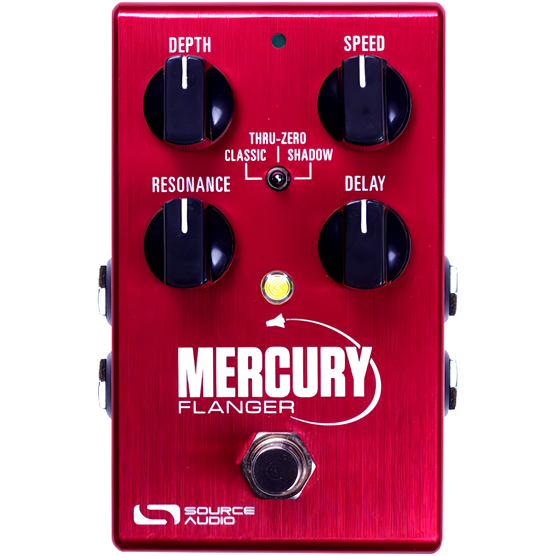 Leave vapor trails in the sky with this powerful stereo flanger pedal. The Mercury Flanger has three effect types: Classic mode offers a deep and dramatic effect in the style of the earliest flanger pedals, Thru-Zero (a.k.a. “Tape Flange”) dramatically delivers the distinguishable twisting effect that occurs when the dry and modulating signals reach their intersection point, and the Shadow flanger offers a highly resonant yet silky smooth tone, with the jet engine “whoosh” flange fanatics crave. The Mercury also includes an on-board Delay control to explore that beautiful cosmic space between chorus and flanger.