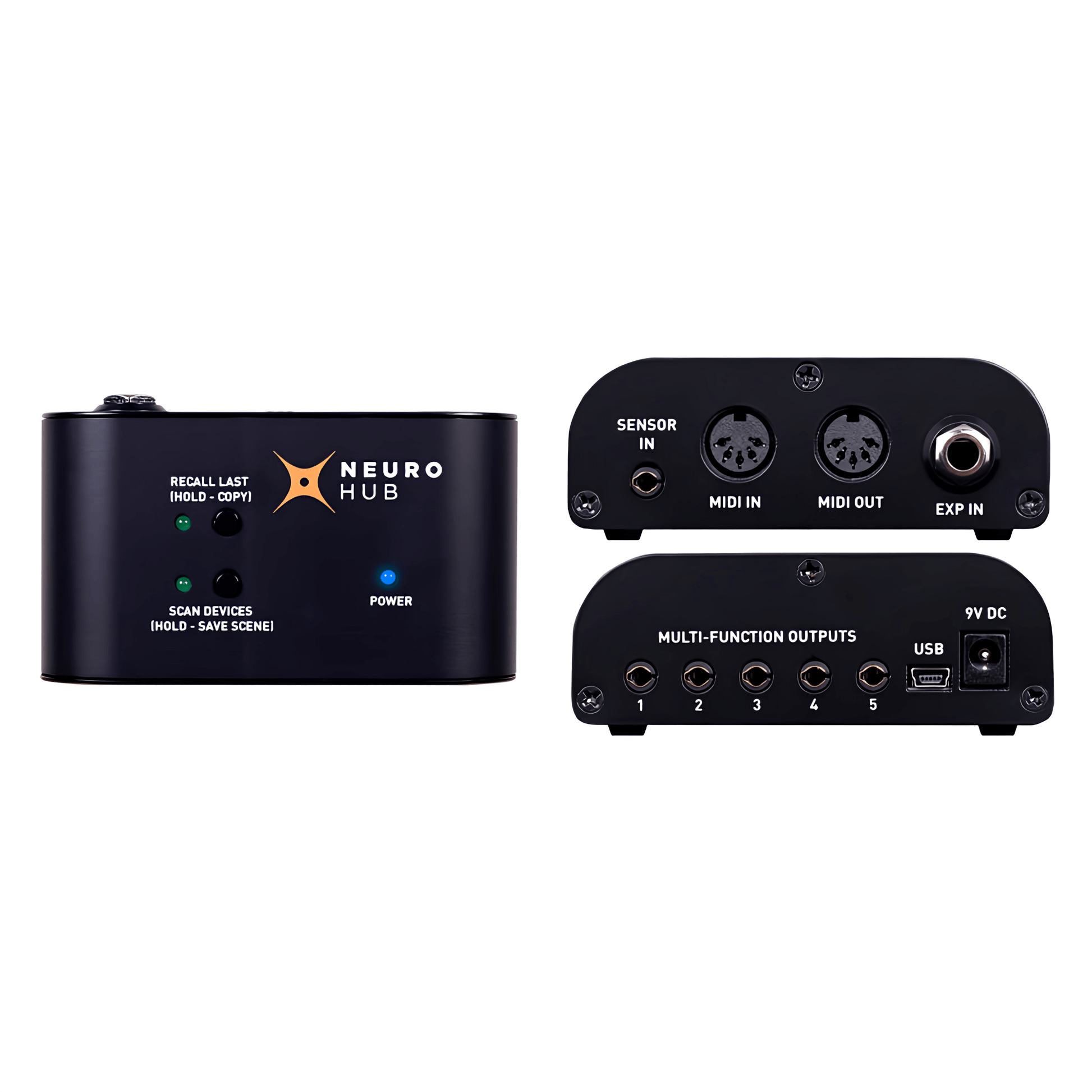 The Neuro Hub brings full MIDI functionality to all of Source Audio's One Series and Soundblox 2 pedals. Connect the Hub to as many as five pedals and combine them into a thoroughly integrated multi-pedal system. This breakthrough in effect technology introduces Source Audio’s new scene saving functionality, enabling the creation of up to 128 single or multi-pedal presets (i.e. “scenes”), each recallable via MIDI Program Change messages. Simply dial in your One Series and Soundblox 2 effects as you would any traditional pedalboard, then hit SAVE on the Hub and your pedal settings are captured! Enjoy the power of one-step scene recall without the headache of navigating a complicated multi-effects processor.
