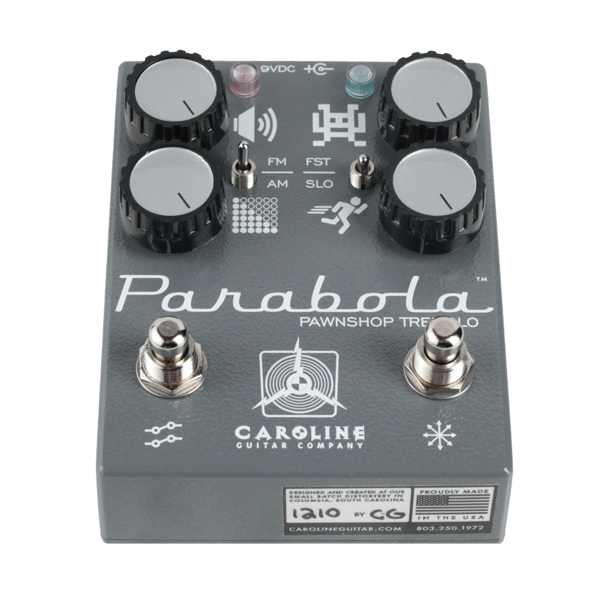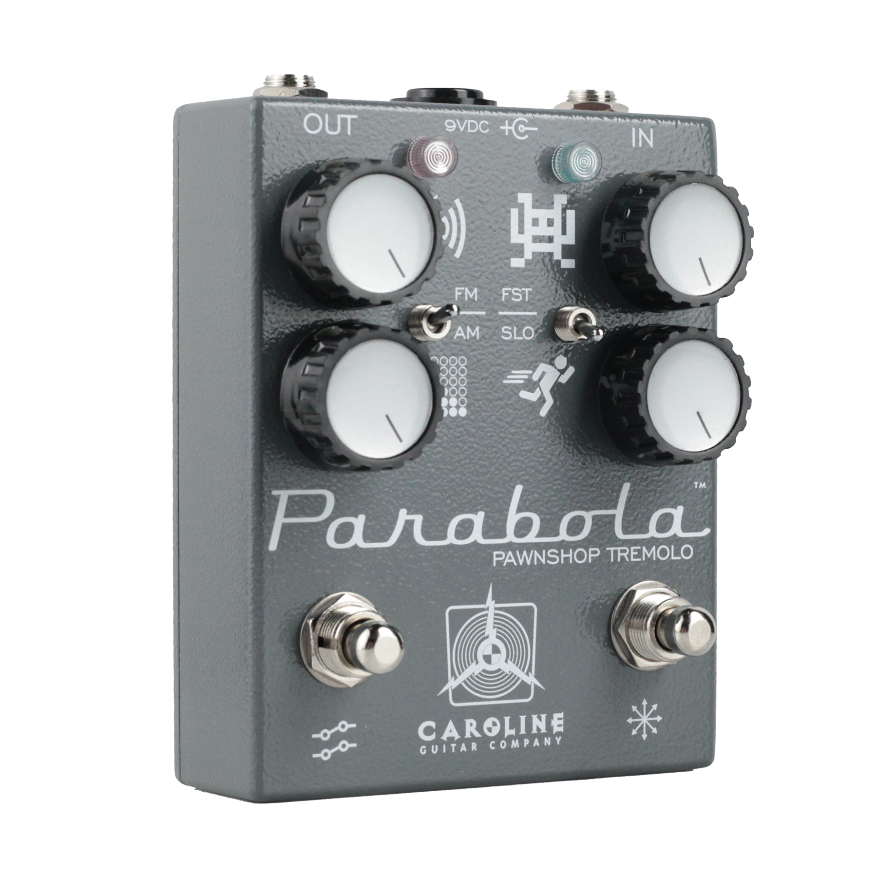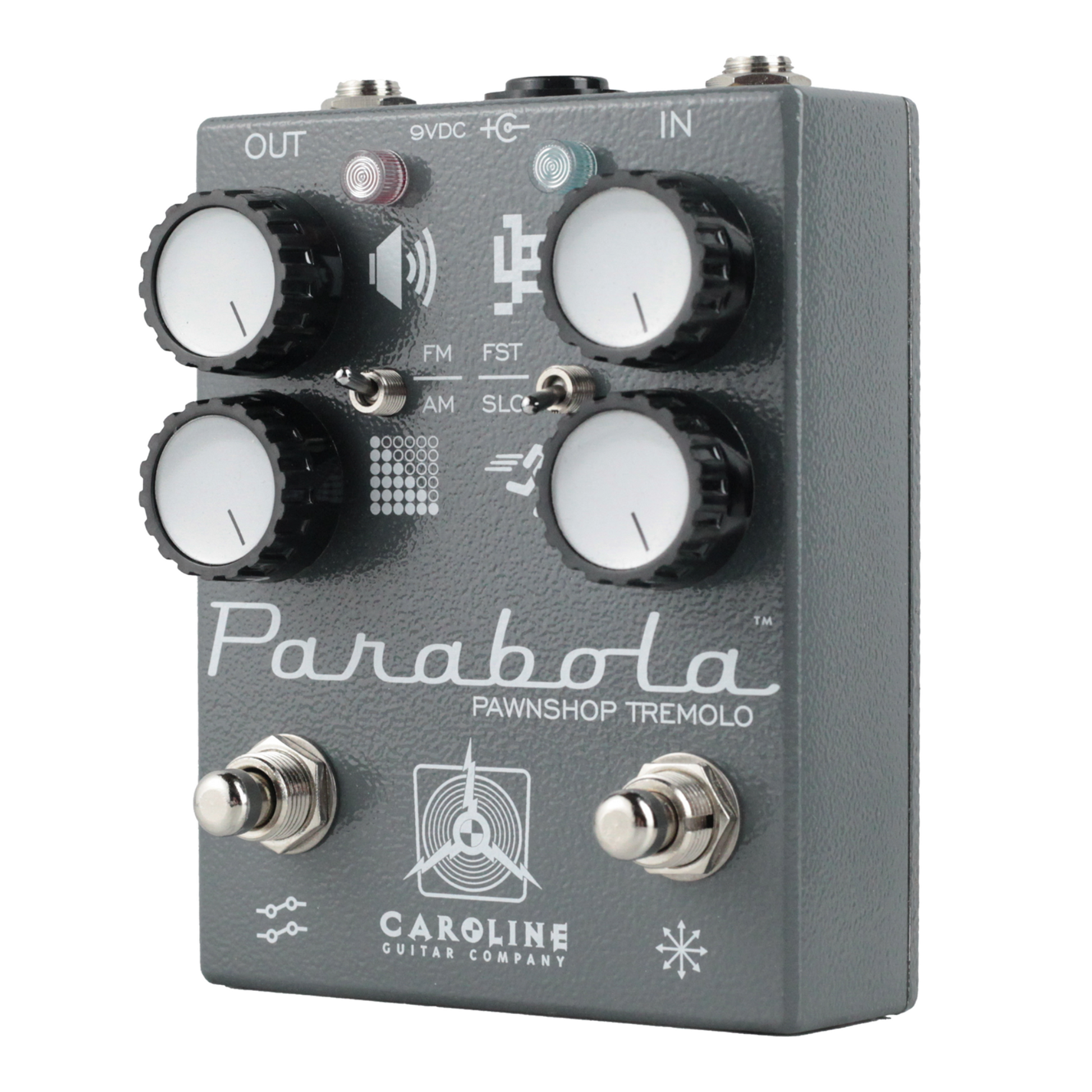 The Parabola is a solid state, transistor generated waveform tremolo. The oscillator is strongly influenced by the vintage Schaller TR-68/TR-316 “West Germany” tremolo pedals that I fell in love with in the 1990s. They have a gorgeous analog waveform that actually changes shape with the depth control.