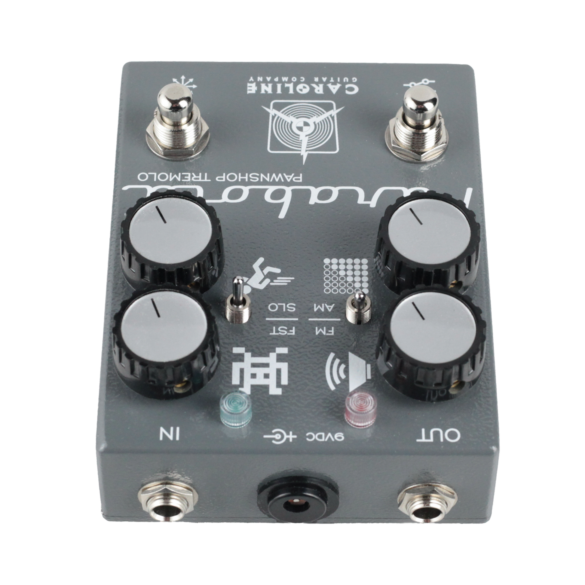Beyond a faithful approach to the transistor LFO, there are a host of improvements we’ve made. The Parabola’s volume control has more than enough output to compensate for any perceived volume loss of the tremolo effect – in fact, it’s up to +12db of clean gain – AND there is a gorgeous preamplifier drive stage based on the “invader” preamp of our Kilobyte and Météore pedals, so you can crank the gain and generate drive at any volume. You can think of the Parabola as an additional “tremolo channel” for your setup.