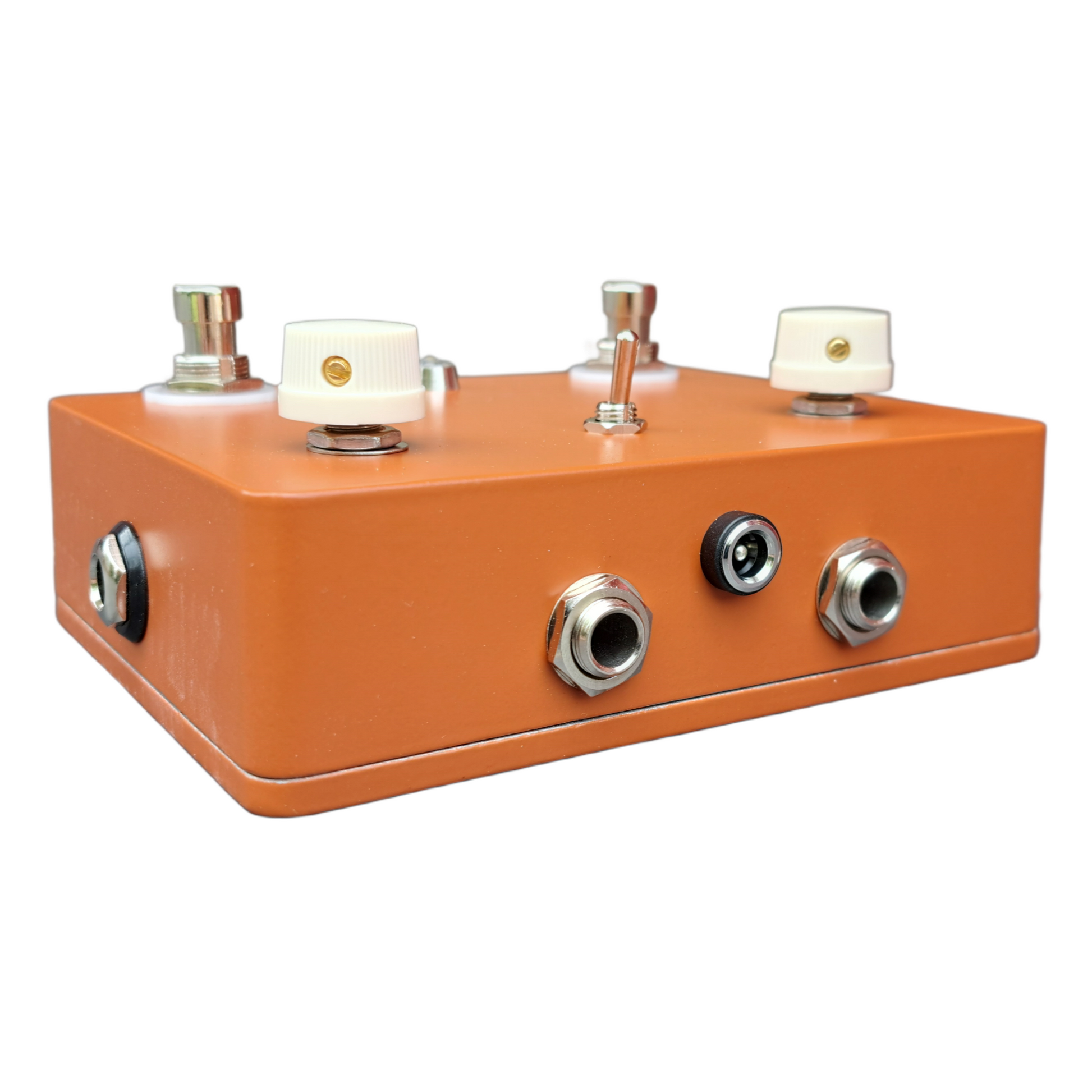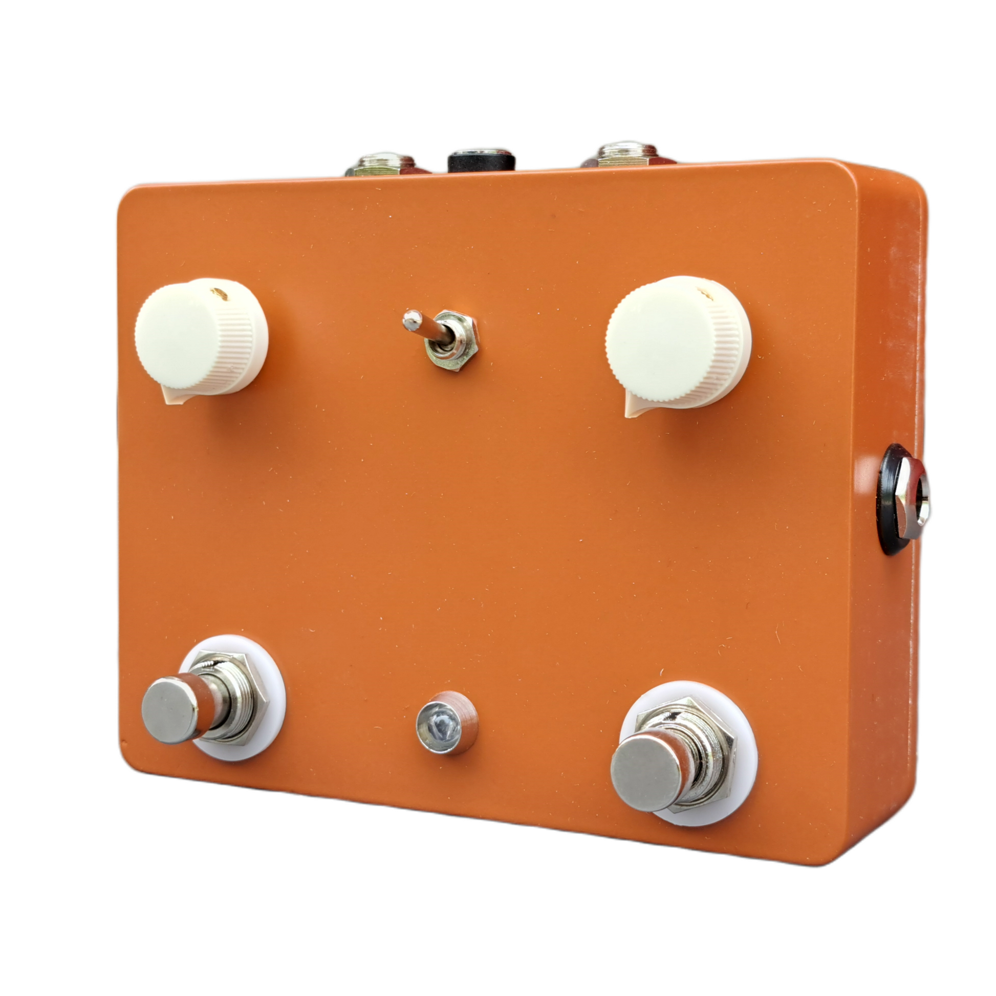 Recurring is based on the Vox Repeat Percussion, originally created by Thomas Organ to simulate the rapid strumming of stringed instruments. While the original repeat percussion is at the center of recurring, yesterday effects has taken measures to improve the circuit while still maintaining its original essence. A latching footswitch allows the user to extend the range of rate, and the rate control is compatible with expression pedals and lfo-based expression controllers.