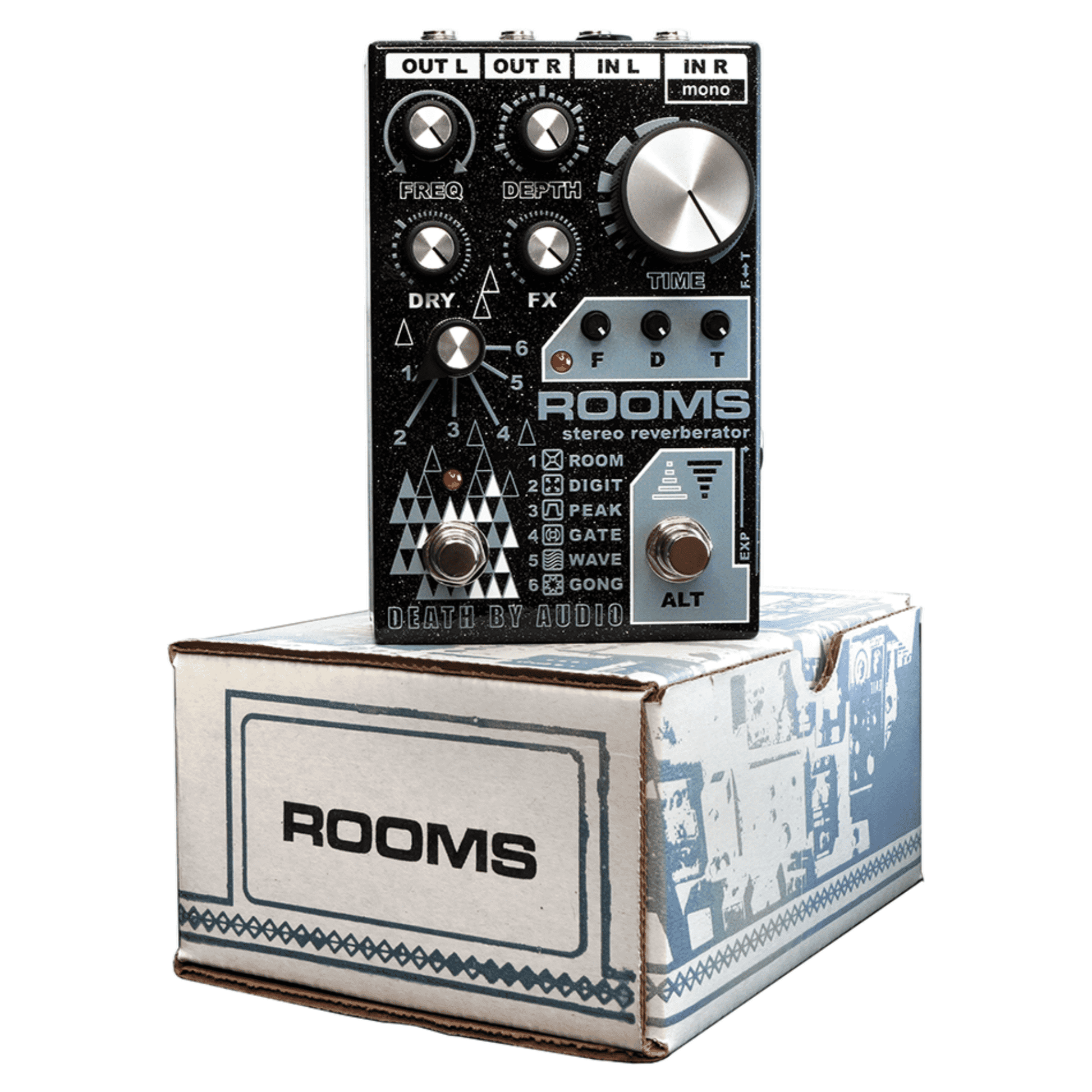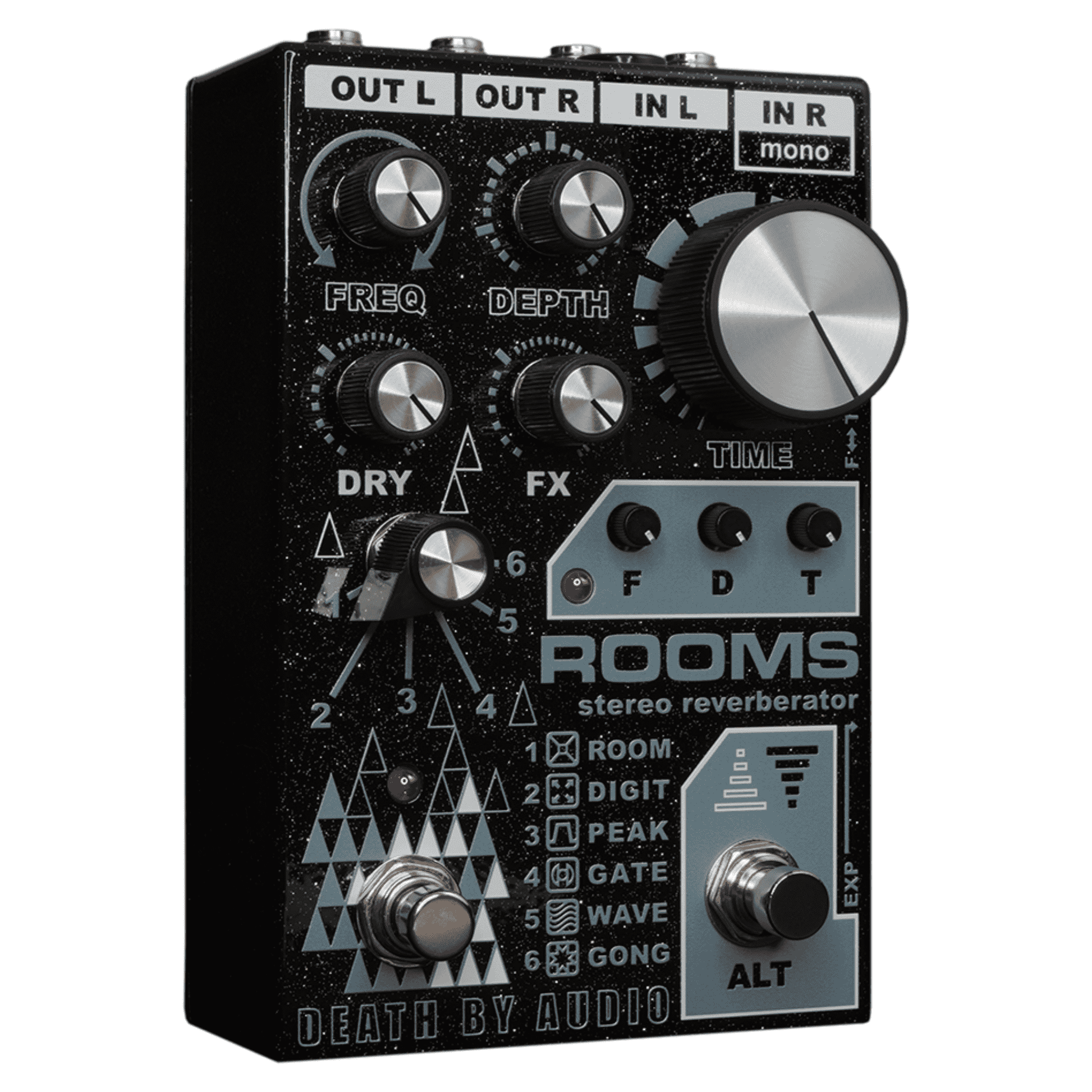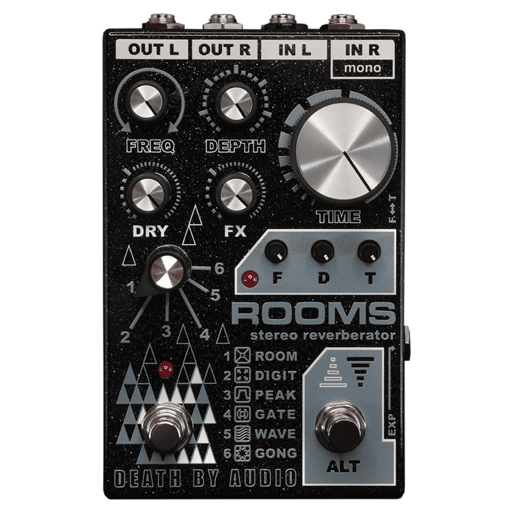 - Expression Pedal: Almost any expression pedal will work with ROOMS. When not plugged in, the controls work as normal. NOTE: Expression control ONLY controls the F or T knobs when ALT mode is engaged and when an expression pedal is plugged in.