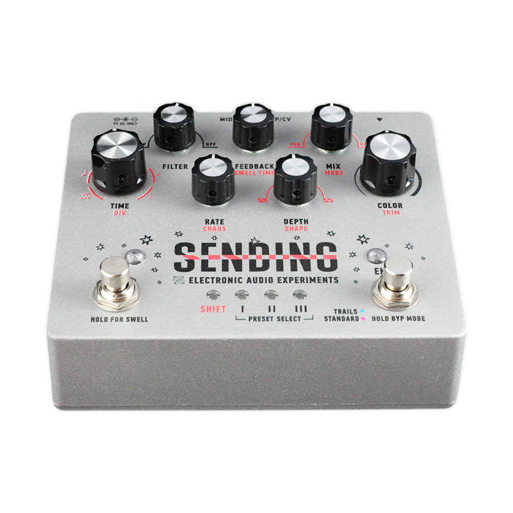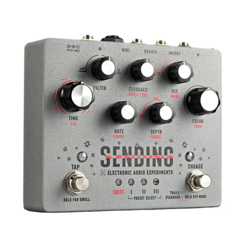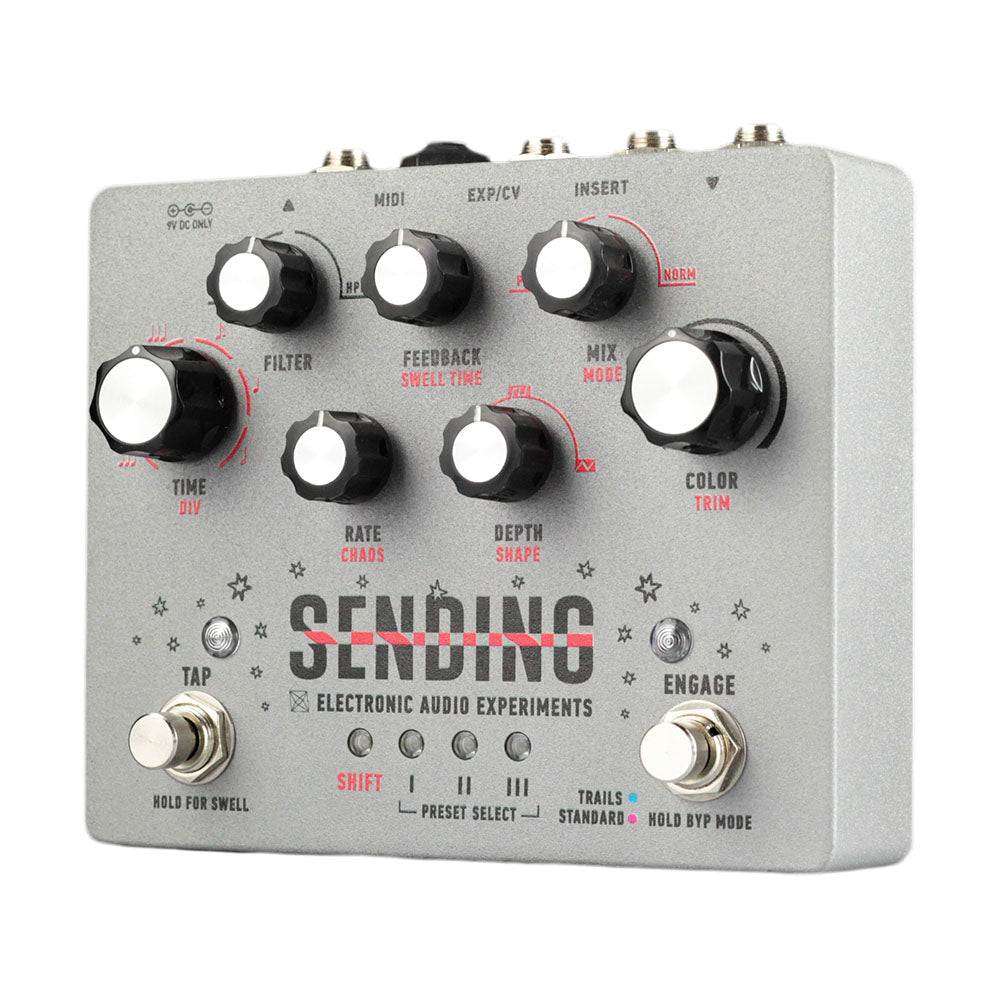 Sending V2 is an analog delay that melds the archaic voice of bucket brigade devices with a fully modern toolbox of digital control. It embraces the character and idiosyncrasies of the medium while delivering high quality sound and performance-friendly features worthy of the modern musician.