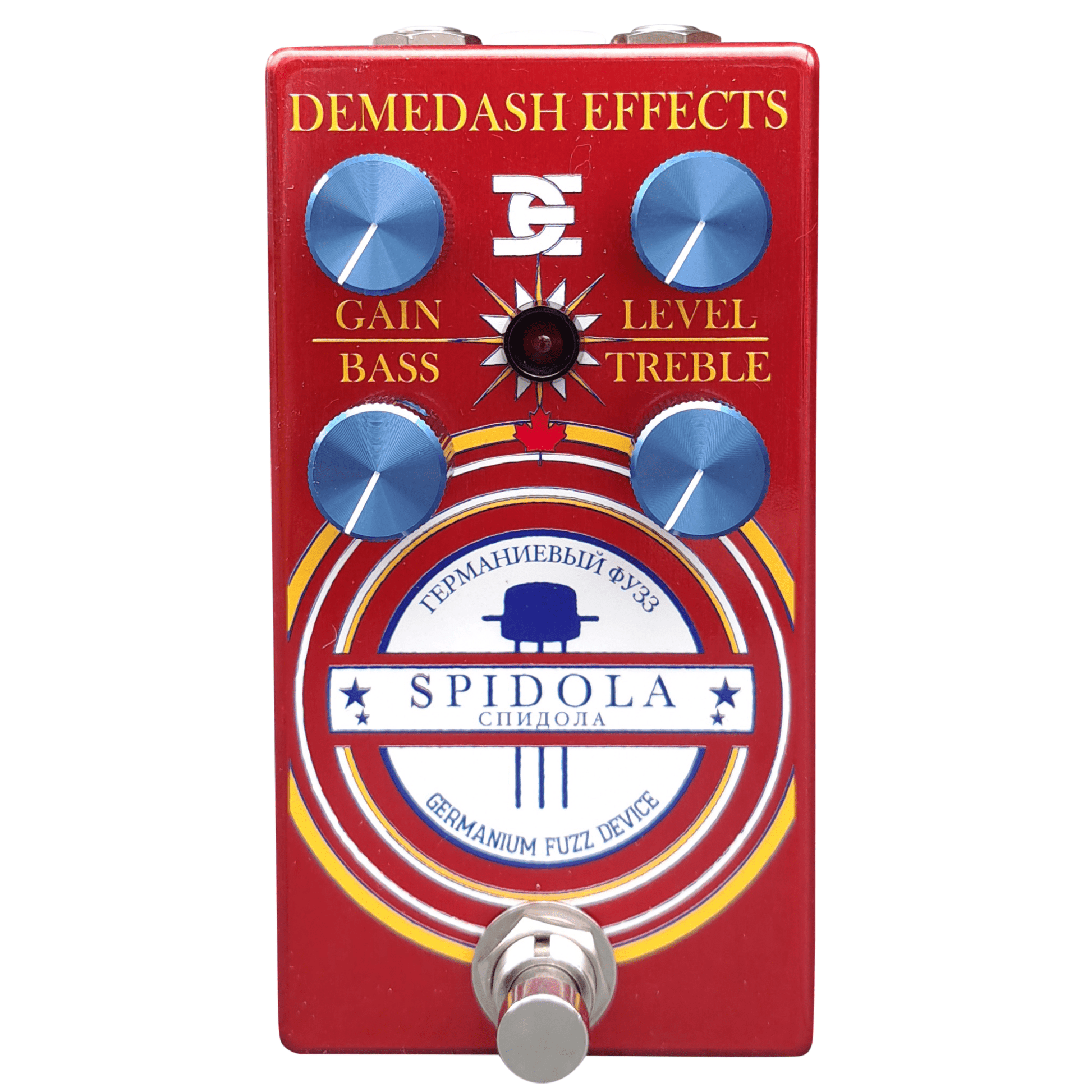 A parallel path device, the Spidola features a genuine hot-rodded Germainum Treble-Booster Fuzz in parallel with a bass overdrive.