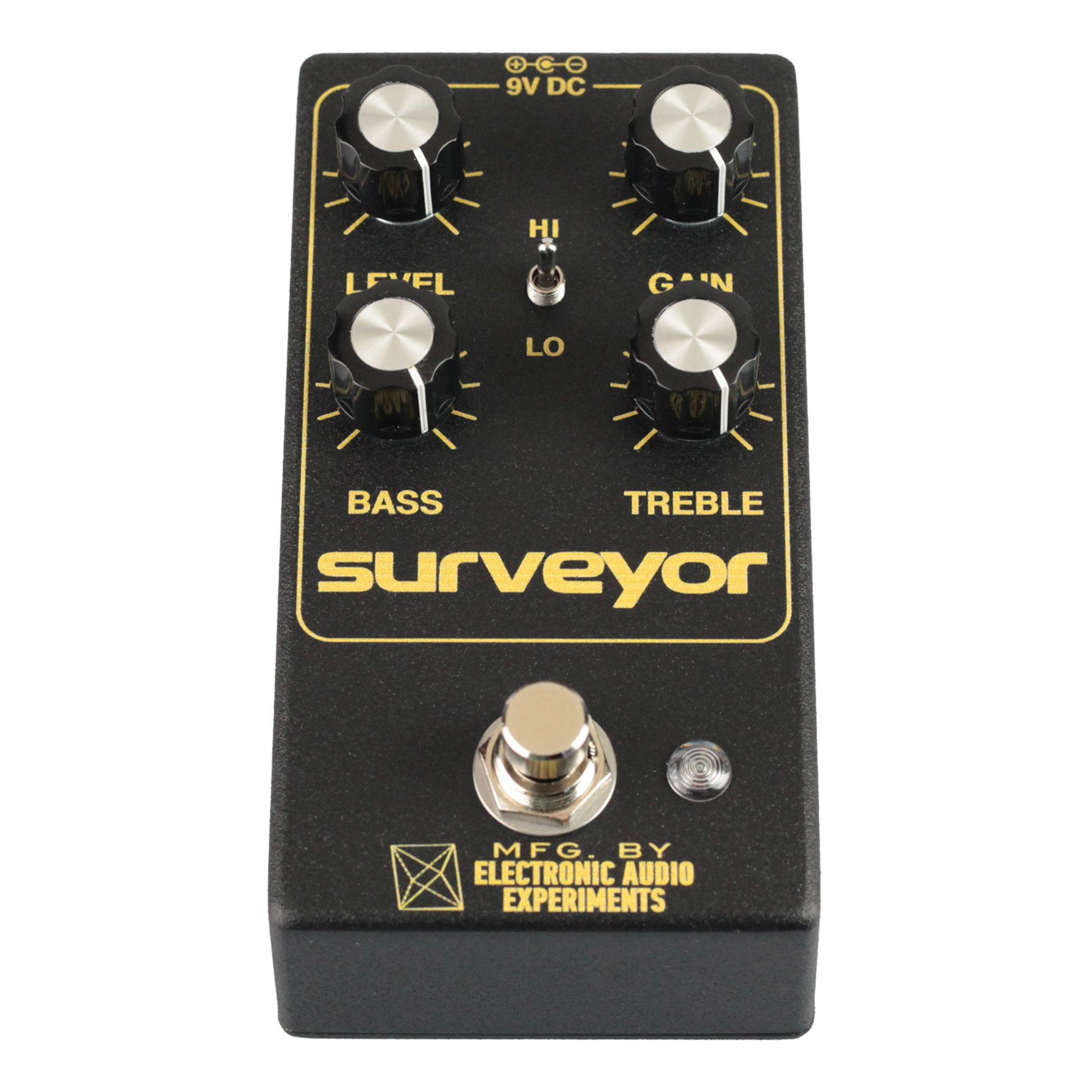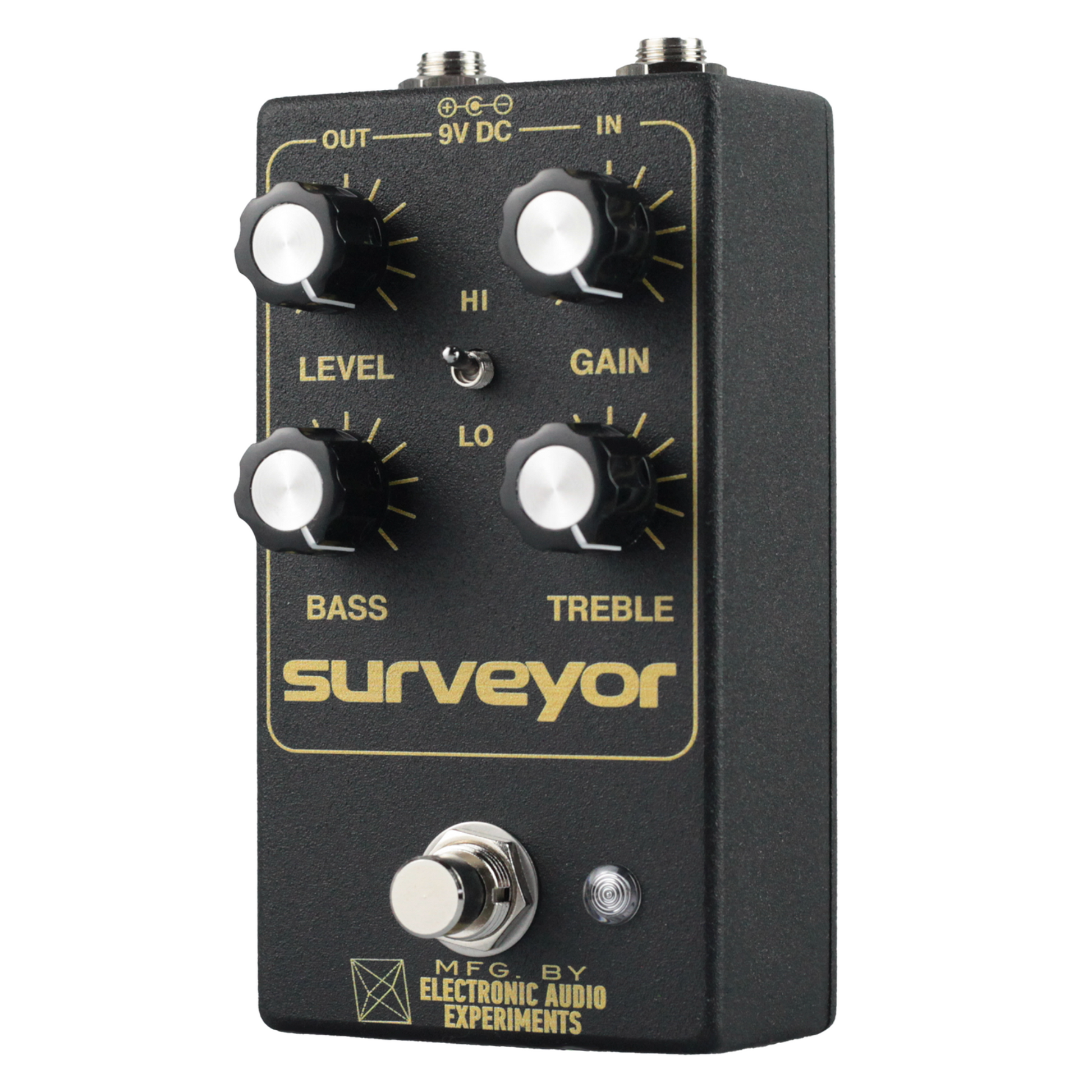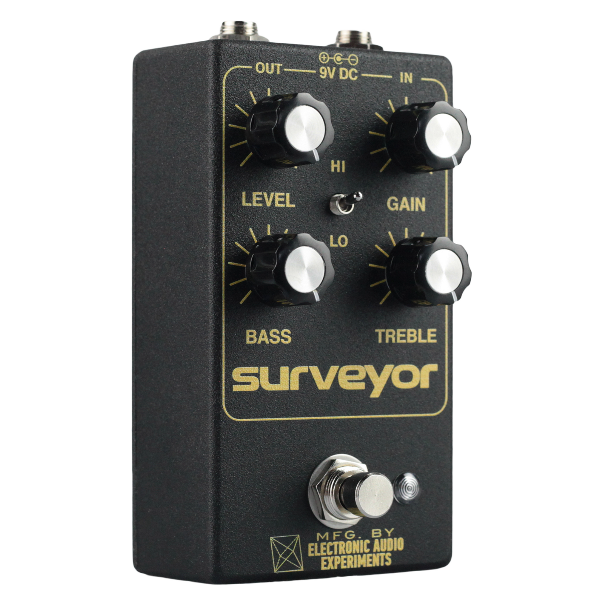 The Electronic Audio Experiments Surveyor is a compact re-interpretation of the Instrument Voicing Preamp (aka IVP), a cult classic and long discontinued rackmount preamplifier. The IVP is best known for its distinctively clangy tone and harsh attack at high treble settings—especially in conjunction with an aluminum neck guitar, single coil pickups, and full range speakers—but its unique solid-state voice transcends genre labels.