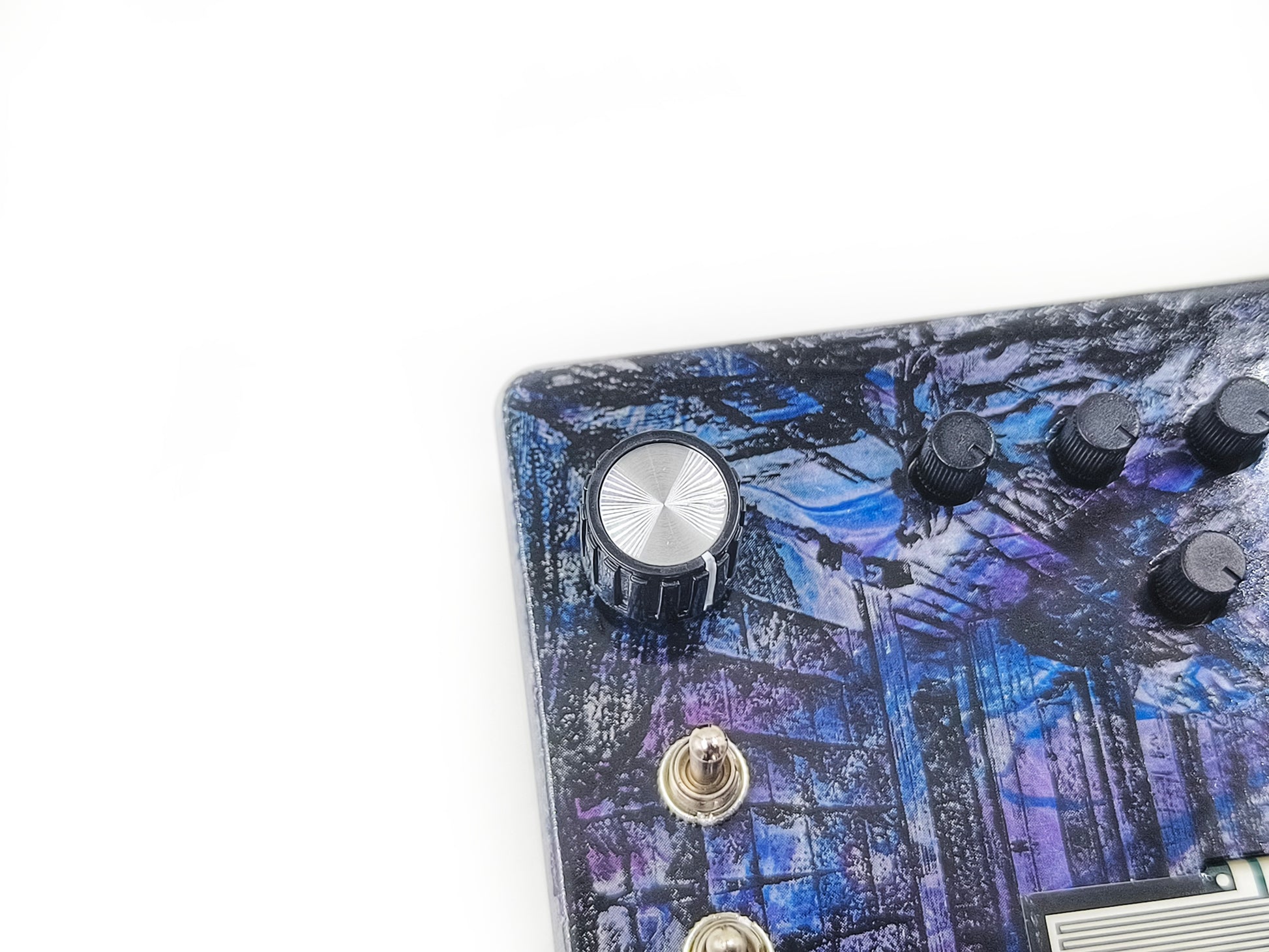 Force sensitive pad (FSR) connects you directly to the main chip’s clock allowing you to tapestop, drop and break the signal, amplify and change the various noises this pedal is capable of producing.