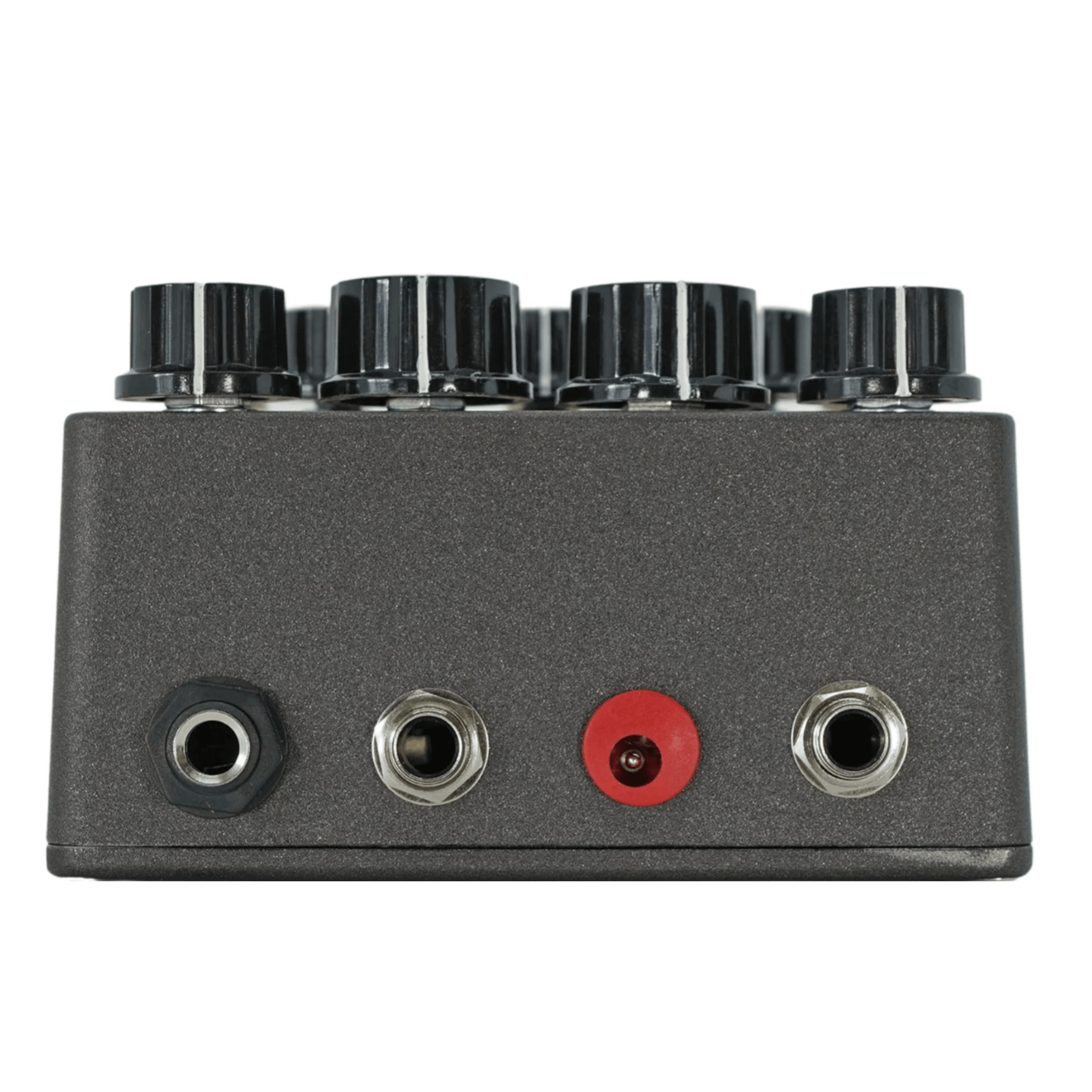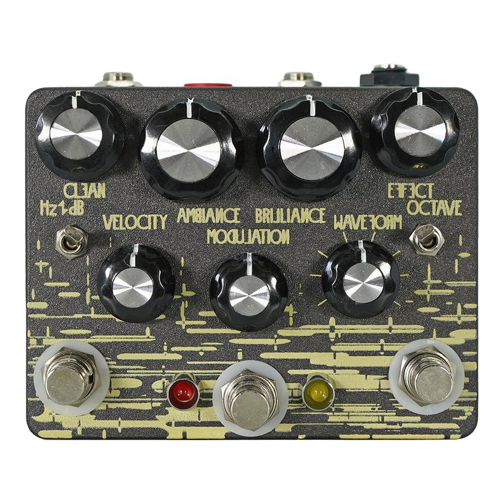 The left footswitch sends the pedal into near infinite sustain with the trails teetering on the edge of self-oscillation. The “Effect” and “Clean” knobs allow you to independently dial in the perfect ratio of wet and dry signals. Adjusting the “Ambiance” and “Brilliance” knobs sets the length of decay and the cutoff frequency of the onboard low pass filter.