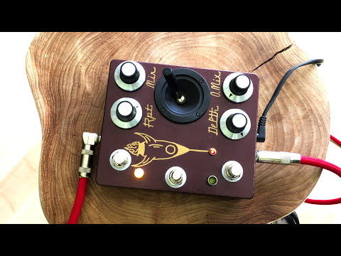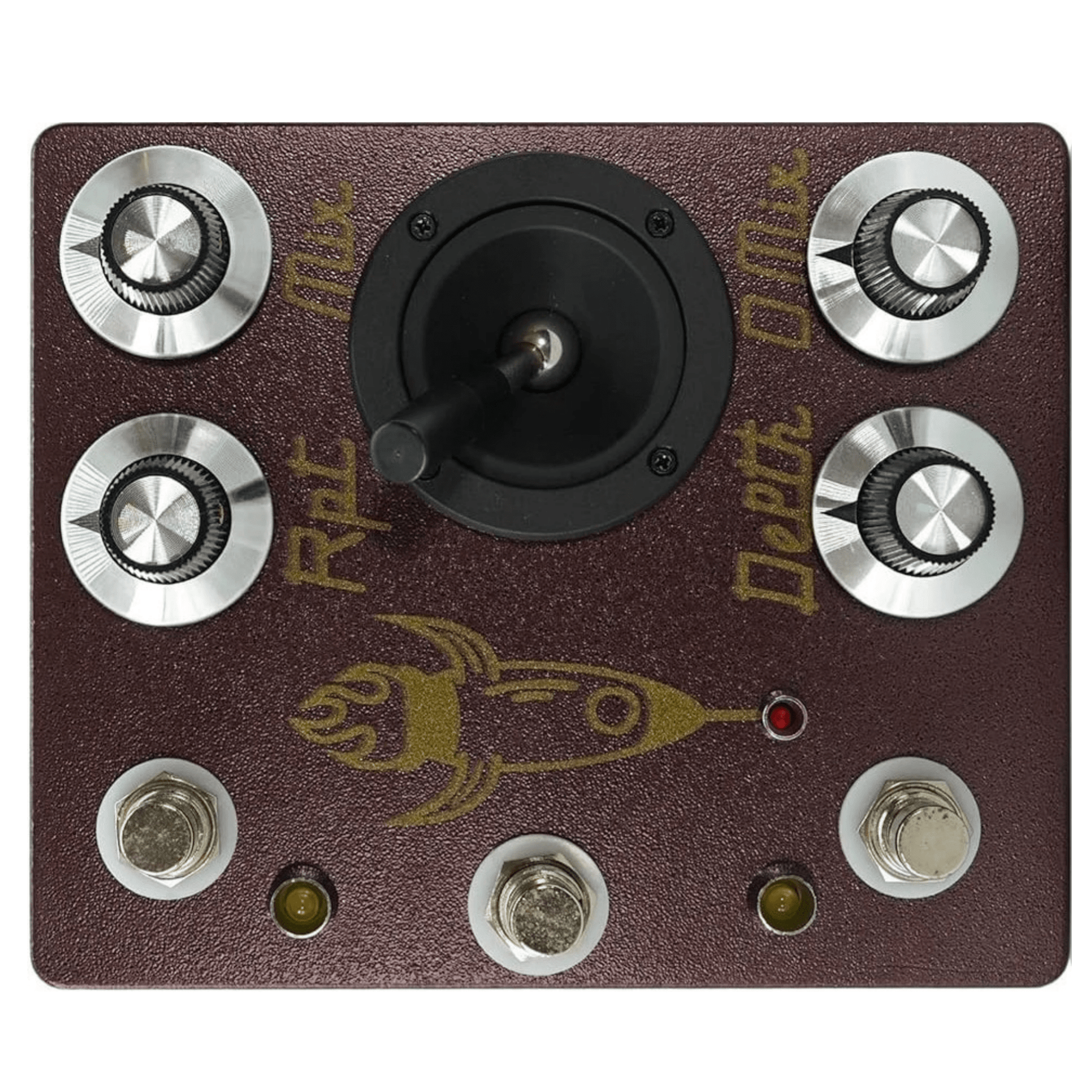 The "Launch" footswitch is a latching switch that creates a below the mix oscillation that can be manipulated with the joystick for outer space noises. The joystick also acts as a pitch selector. With the "Launch" switch activated, the O.Mix knob overrides the Mix knob to allow you to dampen the volume of the oscillation.