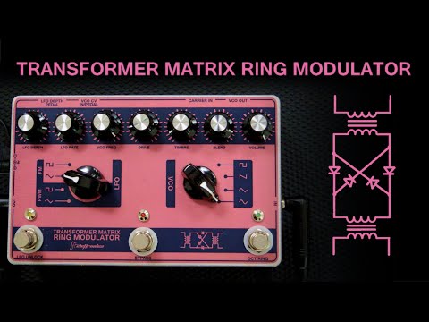 CARRIER IN: This acts as a second input it you want to ring mod two external signals. Connecting a jack will break the path of the VCO. When nothing is connected, the VCO out is “normalized” to the Carrier In (i.e. no jack cable needs to be connected for basic operation). This input has a 20K input impedance so when using a guitar or other high impedance source some signal buffering or pre-amplification will be desirable. Buffering can easily be achieved by connecting a FET switching pedal (e.g Boss, DOD, Ibanez) in bypass between the guitar and this input. If instability is experienced using a wah pedal. The same would be beneficial (between the wah and this input).