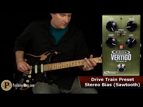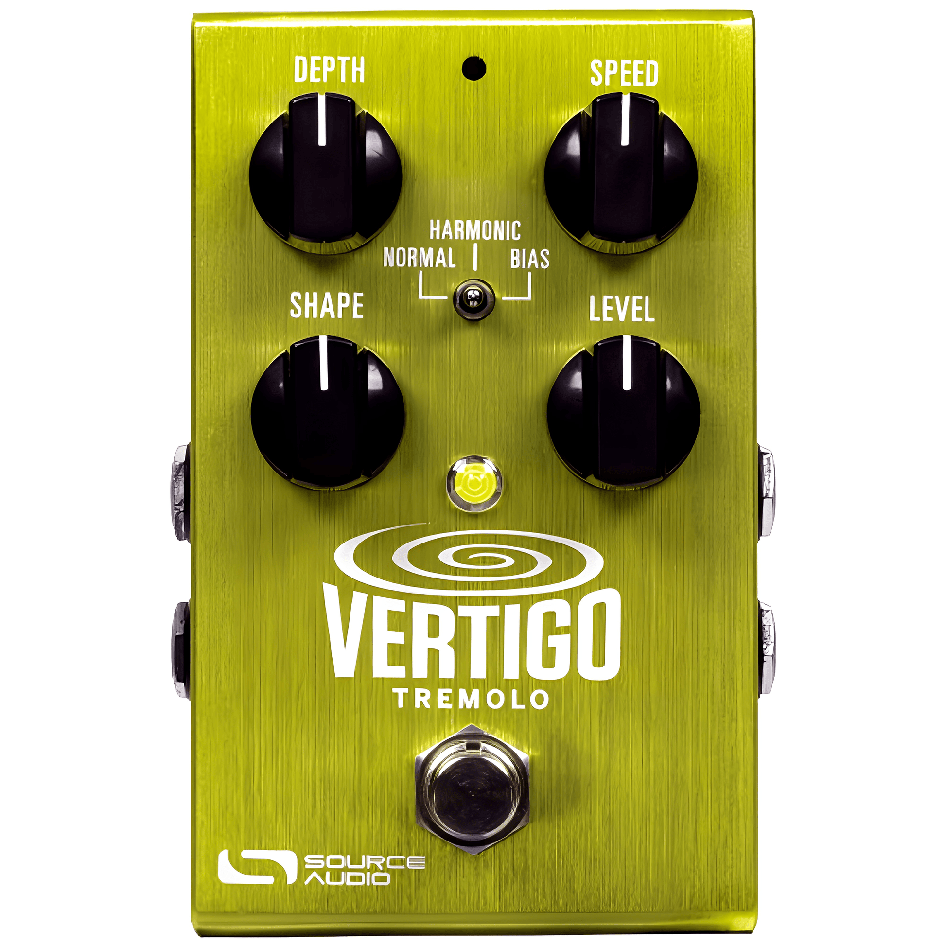 Discover the true spiraling and hypnotic potential of advanced stereo tremolo. The Vertigo offers three distinct tremolo effects. Normal tremolo delivers a divine renewal of the thumping “opto trem” amplitude modulation found in vintage Blackface Fenders. Harmonic revives the haunting sway of the Fender Super’s “Vibrato” effect from the early 60s — this vintage tremolo ping-pongs between a low and high frequency boost, creating a swinging phaser-ish effect. Finally, the sweetly overdriven Bias tremolo creates the swampy “bias wiggle” of early tube bias modulation. The Vertigo takes the tonal possibilities a step further with its Shape knob, which allows users to morph the LFO wave shape from square, to sine or opto, to saw tooth.