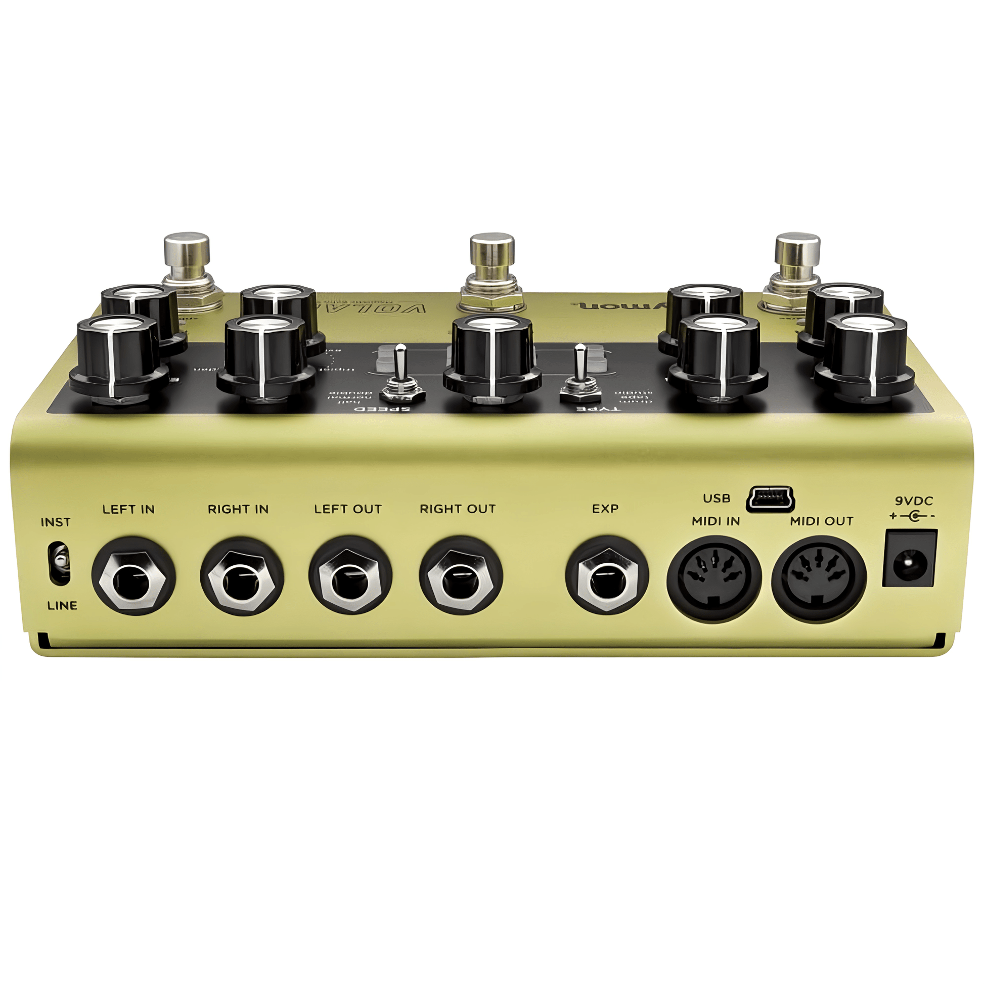 Delivering truly exceptional sound quality and intuitive playability, Volante is designed to radically enhance the sonic expressiveness of your pedalboard. Featuring magnetic drum echo, tape echo, and reel-to-reel studio echo, Volante is a stereo multi-head delay that also offers a Sound on Sound mode and a vintage spring reverb algorithm. Volante’s powerful sound-sculpting controls provide limitless sonic possibilities.
