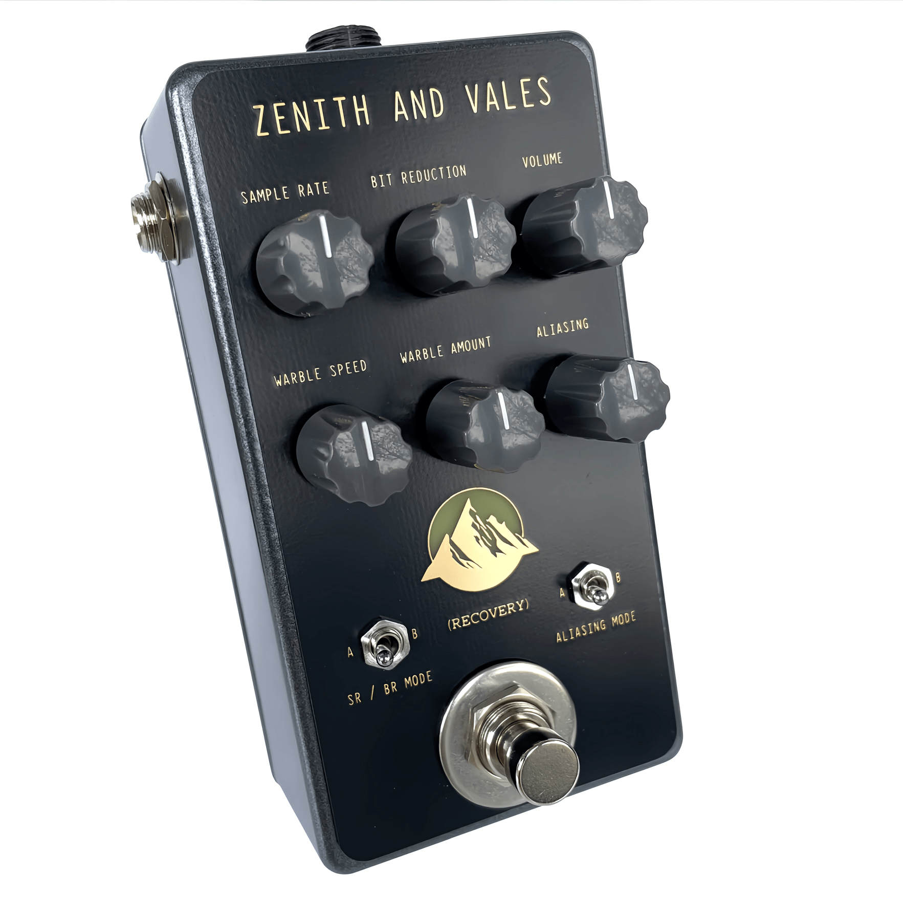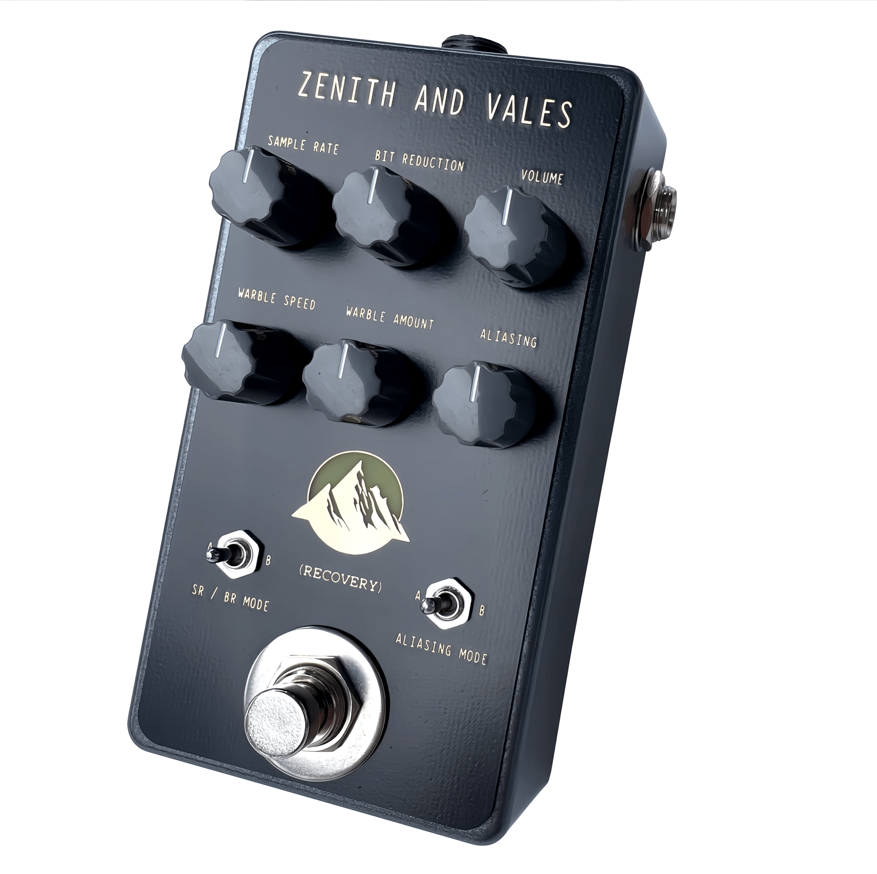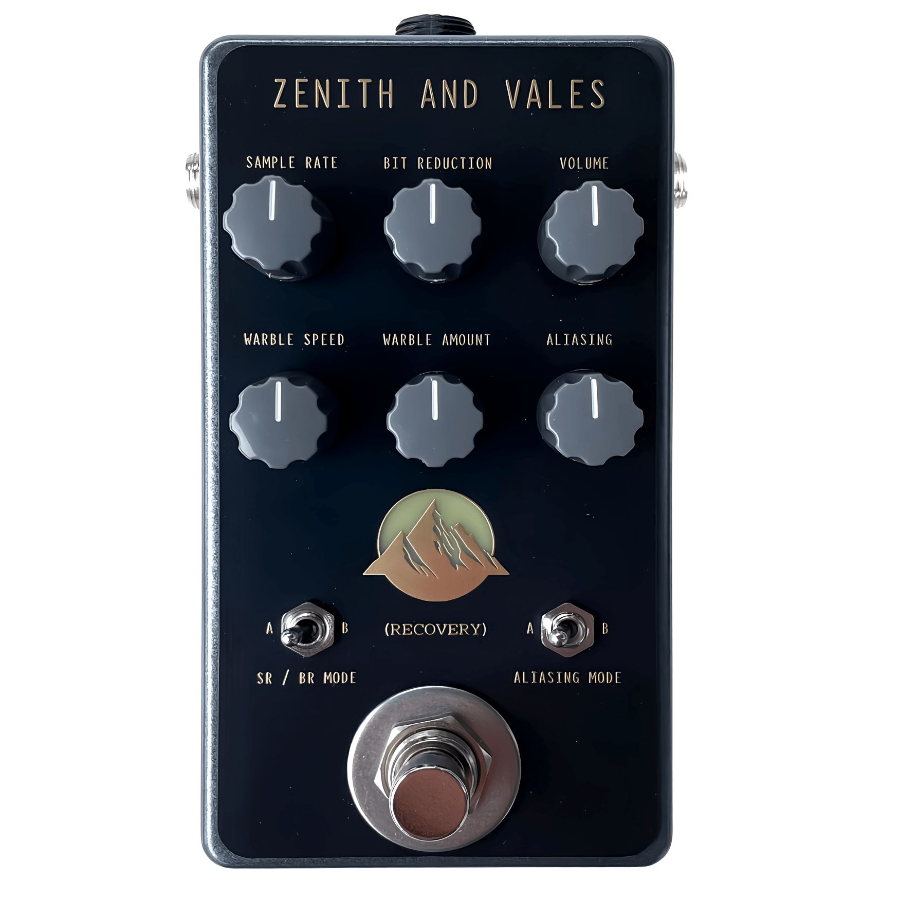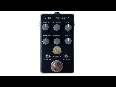 Zenith And Vales has two algorithm modes that alternate between jagged, uneven distorted sounds that are mangled beyond recognition. Additionally, two aliasing modes toggle between light undersampling and heavily pixelated artifacts.